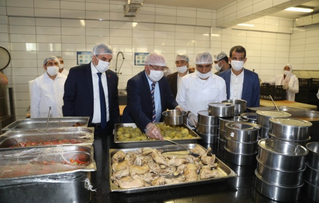 Ziyaretleri kapsamında Birecik Belediye Başkanı Mahmut Mirkelam ile bir araya gelen Şanlıurfa Büyükşehir Belediye Başkanı Zeynel Abidin Beyazgül, Birecik Belediyesi tarafından kurulan aş evine geçerek burada günlük 3 bin 200 kişiye verilen yemek kazanlarının başına geçti.