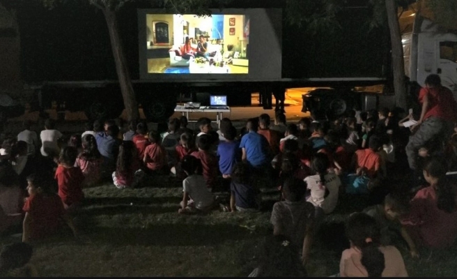 dakikalar yaşatan Büyükşehir Belediyesi açık hava sineması ile çocukların gönüllerine