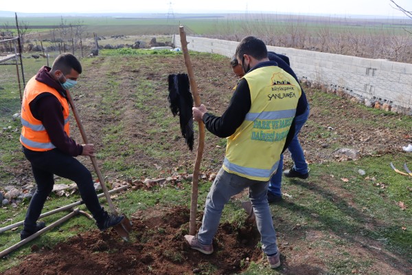 Şanlıurfa’nın Hilvan ilçesinde dağıtılmaya başlanana dut ağaçlarını çitçilerin evlerine kadar ulaştıran Şanlıurfa Büyükşehir Belediyesi Park ve Bahçeler Dairesi Başkanlığı Kırsal Kalkınma ve Tarımsal Hizmetler Şube Müdürlüğü ekipleri, dut ağaçlarını toprakla buluşturarak can suyu da verdi.