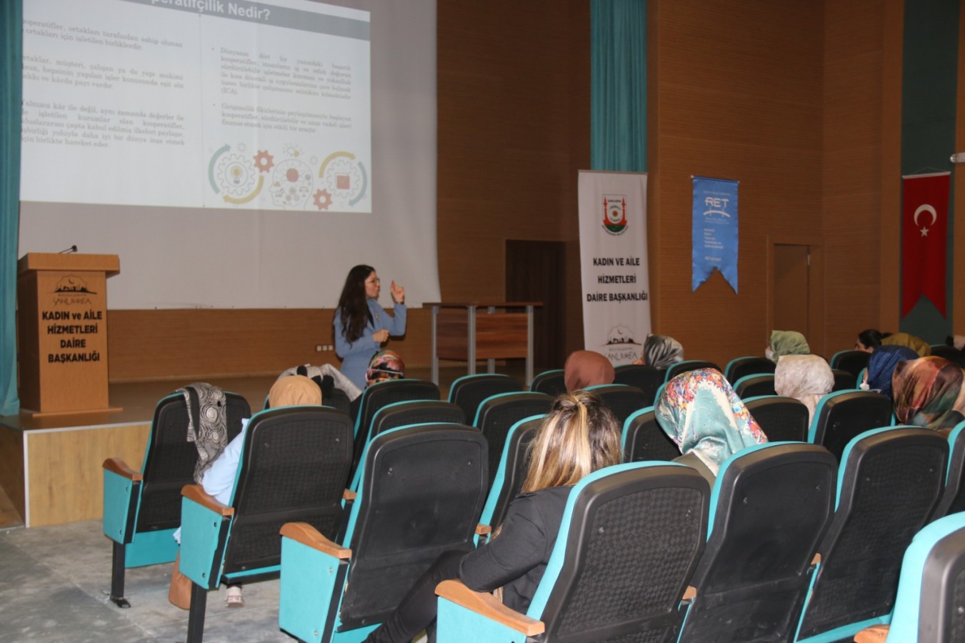 Kalkınmada Lokal Eğitici Aktif Partnerlikler Derneği (LEAP) Türkiye Sorumlusu Emel Demirel Andrews tarafından verilen eğitimde kooperatifçilikle ilgili bilgiler aktarıldı.