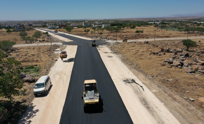 tamamlanan yollarda asfalt serimi devam ediyor.