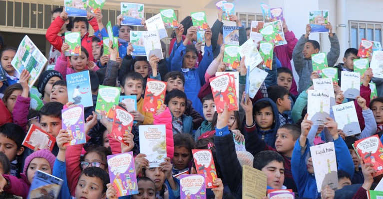 Şanlıurfa Büyükşehir Belediyesi'nin önceki gün Suruç’ta Ali Eroğlu İlkokulu ve Bilgi Ortokulu’nun kütüphanesine yönelik kitap desteği öğrenciler tarafından sevinçle karşılandı.
