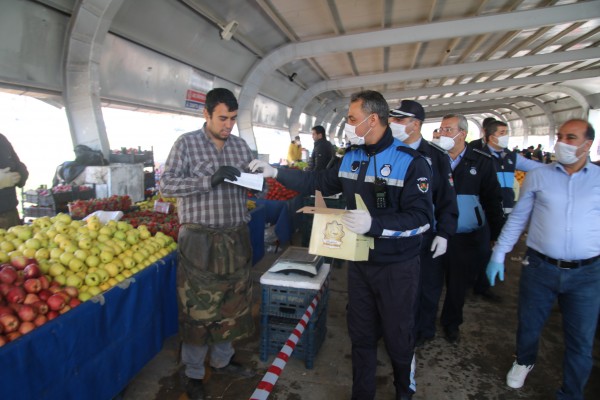 BELTUR VE ZABITA EKİPLERİ PAZARLARDA ÜCRETSİZ MASKE DAĞITTI