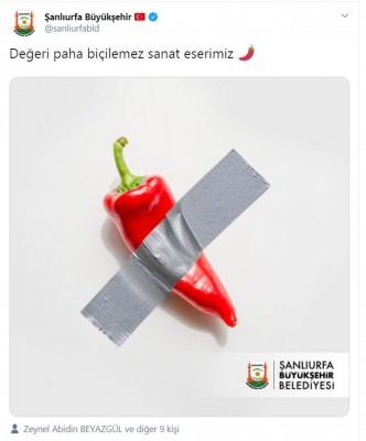 Eserin uçuk fiyatı sonrası Türkiye genelinde sanatçıya göndermeler yapılırken, muza bir rakipte Urfa'dan geldi. Şanlıurfa Büyükşehir Belediyesi, resmi sosyal medya hesaplarından kentin simgelerinden olan isotu duvara bantlayarak paylaştı. Paylaşıma bir de not düşen belediye, "Değeri paha biçilemez sanat eserimiz" ifadelerine yer verdi.