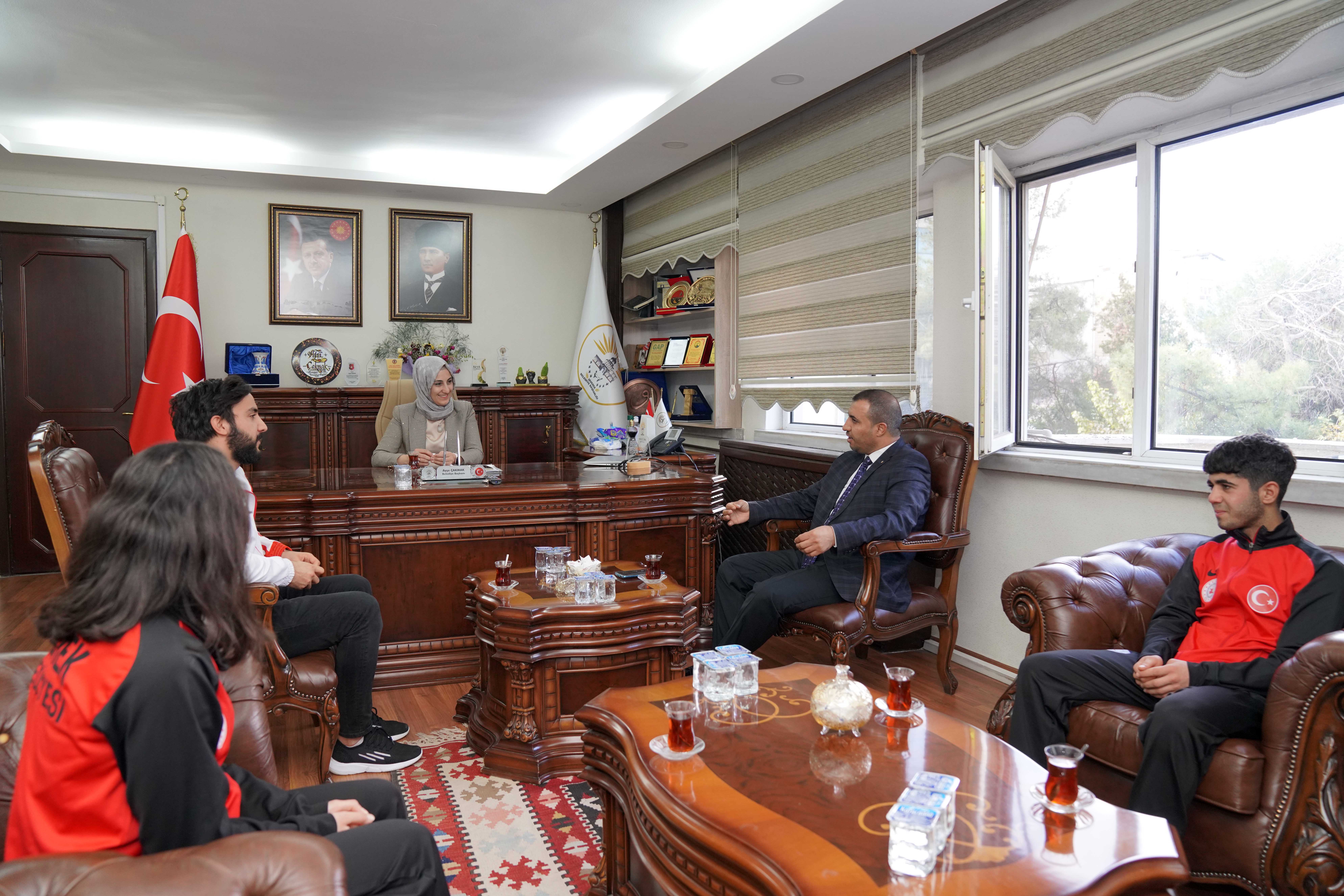 Wushu Türkiye Şampiyonası’nda derece yapan Siverekli genç sporcular, Belediye Başkanı Ayşe Çakmak’ı ziyaret etti.