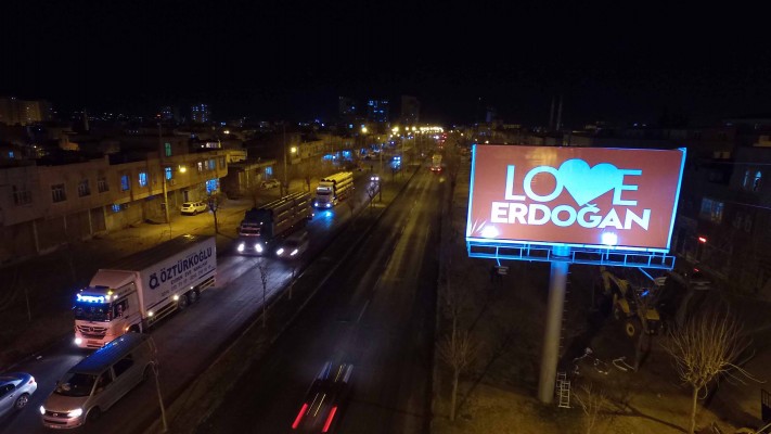 Siverek Belediye Başkanı Ayşe Çakmak, şehrin girişlerinde bulunan ışıklı tabelaları ‘’LOVE Erdoğan’ ’yazılarıyla donattı.