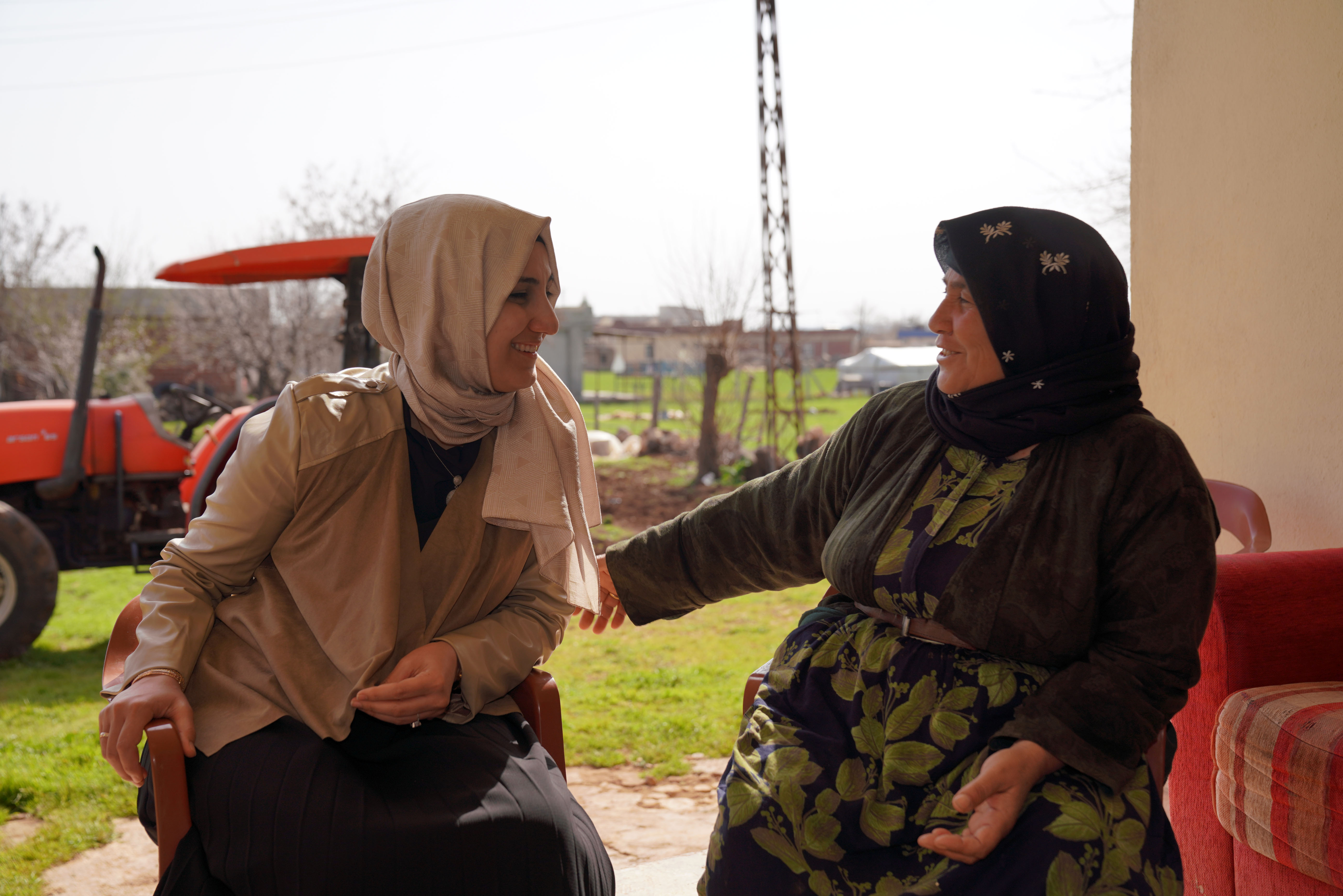 muhtarın eşi Hüsna İnco ile bir araya gelen Çakmak, bir süre sohbet ettiği