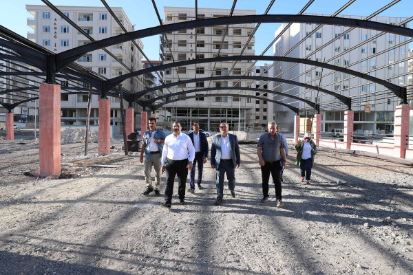 Haliliye Belediye Başkanı Mehmet Canpolat, Karşıyaka Mahallesinde yapımı devam eden semt pazarı, halı saha, camii, muhtar evi ve zabıta amirliğinin yer aldığı kompleks alanında incelemelerde bulundu.