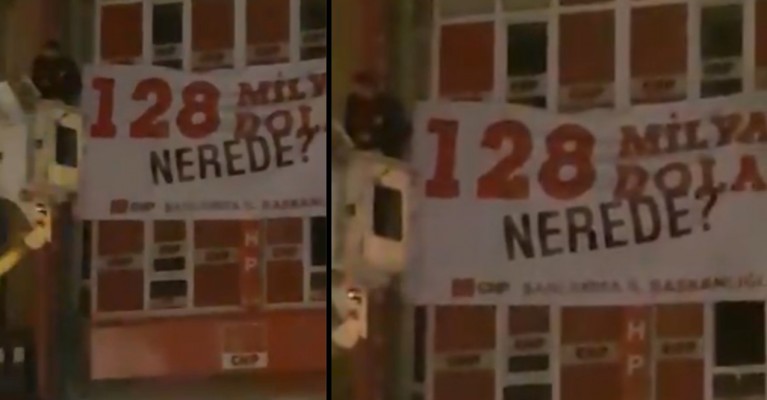 CHP'nin, ülke genelinde parti binalarına astığı ve “Merkez Bankası'nın 128 milyar dolar nerede” diye sorduğu pankartlar kaldırılıyor. Şanlıurfa’da da CHP’liler tarafından partinin il binasına asılan pankart, polis ekipleri tarafından vinç yardımıyla çıkarıldı.