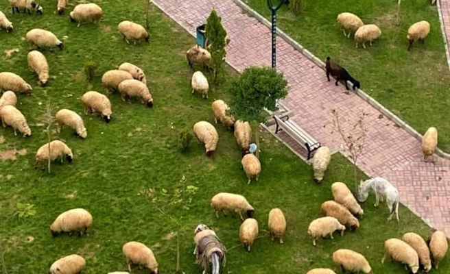 Doğukent Mahallesinde bulunan parkta koyun sürüsünü görenler şaşkınlığını