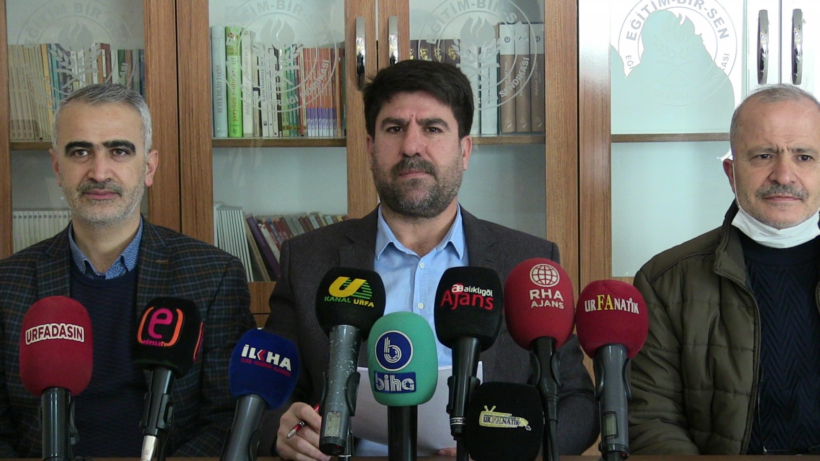 Basın toplantısı, Memur-Sen ve Eğitim-Bir-Sen Şanlıurfa İl Başkanlığı odasında gerçekleşti.