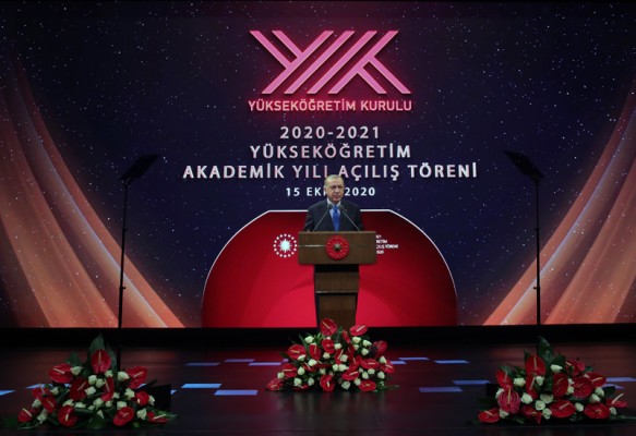 Beştepe Millet Kongre ve Kültür Merkezi’nde düzenlenen törende konuşan Cumhurbaşkanı Erdoğan, üniversitelerin 2020-2021 Akademik Yılının hayırlara vesile olmasını dileyerek, koronavirüs salgını sebebiyle zor şartlarda yürütülüyor olsa da akademik eğitim ve öğretimin kesintisiz devam etmesinin çok önemli olduğunu söyledi.