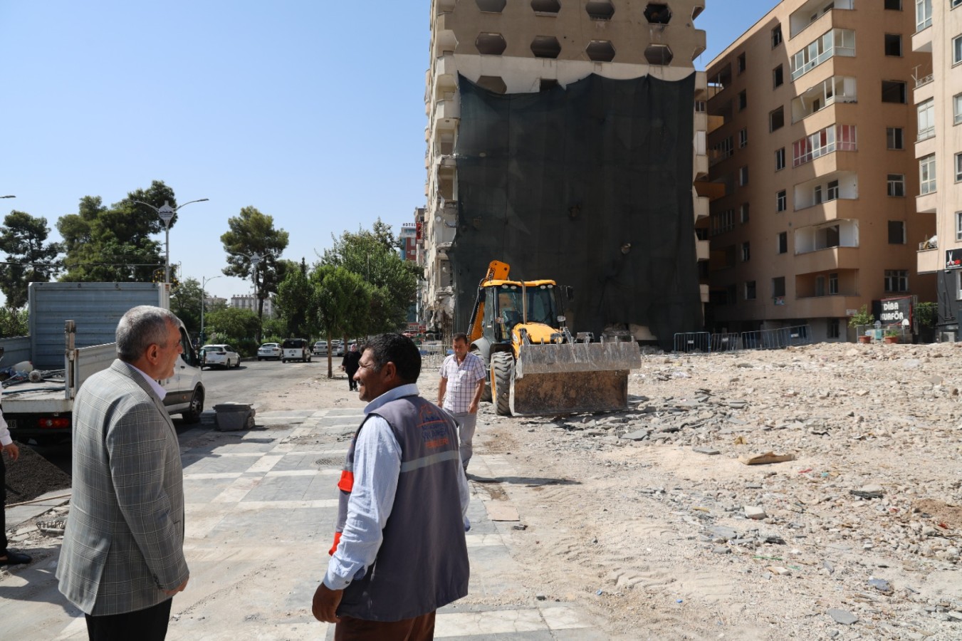 Şanlıurfa Büyükşehir Belediye Başkanı Zeynel Abidin Beyazgül, Kahramanmaraş merkezli depremde ağır hasar alarak kontrollü şekilde yıkımları gerçekleşen Bahçelievler Mahallesindeki çevre düzenleme çalışmalarını inceledi.