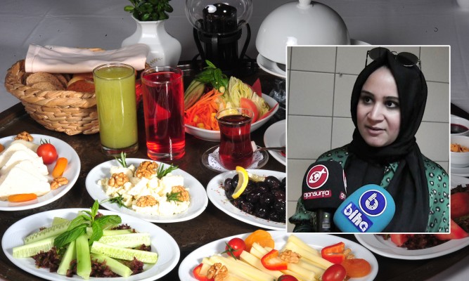 Mehmet Akif İnan Eğitim ve Araştırma Hastanesi Haliliye ek Binasında görevli Diyetisyen Emine Vildan Güney, Mübarek Ramazan ayının gelmesiyle beraber nasıl beslenilmesi gerektiği, iftar ve sahur vaktinde ne tür gıdaların tüketilmesi konusunda önerilerde bulundu. Bizim Haber Ajansı'na (BİHA) açıklamada bulunan Diyetisyen Güney, “Ramazan ayının gelmesi ile beraber beslenmede de sorunlarımız artmakta. Yeterli ve dengeli beslenmek bizim en önemli kıldığımız nokta. Sonuçta biz iki ana öğün ve iki ara öğün olarak beslenmeye çalışıyoruz. 14 saatlik açlık süresi boyunca geri kalan süreyi yeterli ve dengeli beslenmeye yönelik olarak harcamak istiyoruz. Bu yüzden öncelikle bütün gıda gruplarından süt, peynir, et yoğurt, tahıl gruplarını eşit ve bizim gün içindeki açlık süremizi koruyacak şekilde düzenlememiz lazım. Özellikle sahurda genelde süt grubundan peynir, tam tahıllı buğday ekmekleri, bunun dışında ceviz ve meyve grubundan da tüketmeliyiz. Bunun yanında ufak salatalarla da destekleyebiliriz. Ayrıca su tüketimine de çok özen göstermeliyiz, günlük olarak sahur ve iftar arsında yaklaşık 2-2.5 litre 12-14 bardak su tüketimine özen göstermeliyiz” dedi.