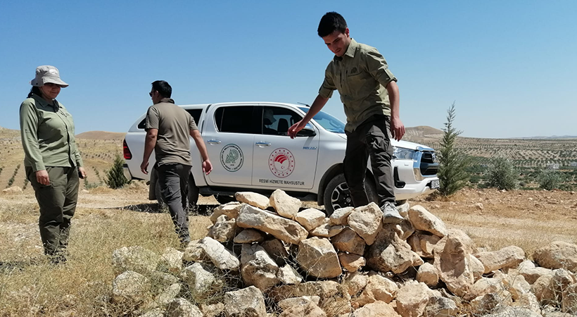 “Şanlıurfa Şube Müdürlüğümüze bağlı Birecik Şefliği personelleri  av koruma ve kontrol faaliyetleri sırasında Kınalı Keklik avı için taşlarla örülmüş (güme) yapıları yıkarak tuzak avcılığına izin vermedi.”.