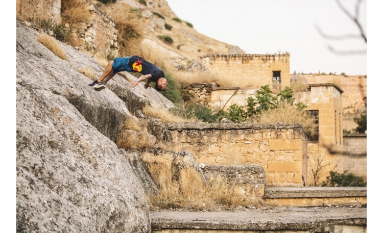 Son yılların yükselen sporlarından freerun sporunun dünyadaki en iyilerinden RedBull sporcusu Alexander Titarenko, doğal güzelliği ve büyük bölümü sular altında kalan Türkiye’nin tarihi cenneti Halfeti’de boş evlerin çatılarından ve binaların arasından akrobatik hareketlerle geçerek unutulmaz bir performans sergiledi.