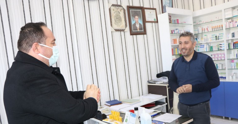 Başkan yardımcısı ve Belediye Meclis üyeleri ile birlikte ilçedeki eczaneleri ziyaret eden Ekinci, eczacılar ve eczanedeki vatandaşlarla sohbet ederek istek ve sorunlarını dinledi.