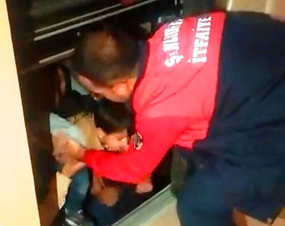 HALİLİYE – Şanlıurfa’nın Haliliye ilçesinde elektrikler kesildiği için asansörde mahsur kalan 5 kişilik ailenin yardımına itfaiye ekipleri yetişti. Aralarında çocukların da bulunduğu aile, asansöre bindikten sonra elektrikler kesildi. Binanın 3 ile 4 katları arasındaki boşlukta mahsur kalanlar komşularından yardım istedi.