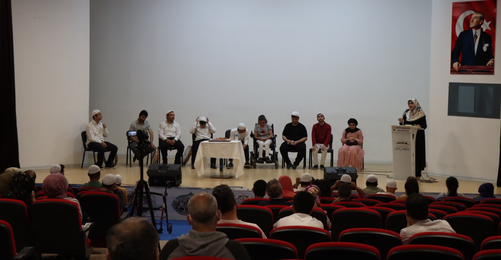 ŞANLIURFA- Görme engeli bulunan bireylere yönelik "Braille Alfabesi" yöntemiyle başlatılan Kuran-ı Kerim kursunda Engelleri Şanlıurfa Büyükşehir Belediyesi ile aşan öğrenciler için hatim programı düzenlendi.