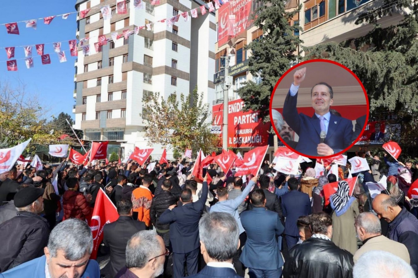YRP Genel Başkanı Fatih Erbakan, seçim çalışmaları çerçevesinde geldiği Şanlıurfa’da partililere ‘balkon’dan seslendi.