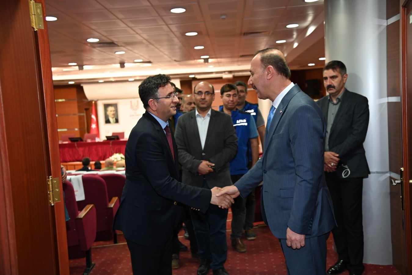 Önceki gün açıklanan Valiler Kararnamesiyle Mülkiye Başmüfettişi olarak görevlendirilen Vali Abdullah Erin, kamu kurumlarının yöneticileri ve Valilik personeliyle buluştu. Valilik Konferans Salonunda gerçekleşen buluşmada; yeni dönemin herkese hayırlar getirmesini dileyen Vali Erin, “Yeni gelen valimiz de meslekte temayüz etmiş, son derece başarılı, çalışkan, gayretli bir kardeşimiz. İnşallah bizden daha iyisini yapacak, buna inanıyorum” dedi.