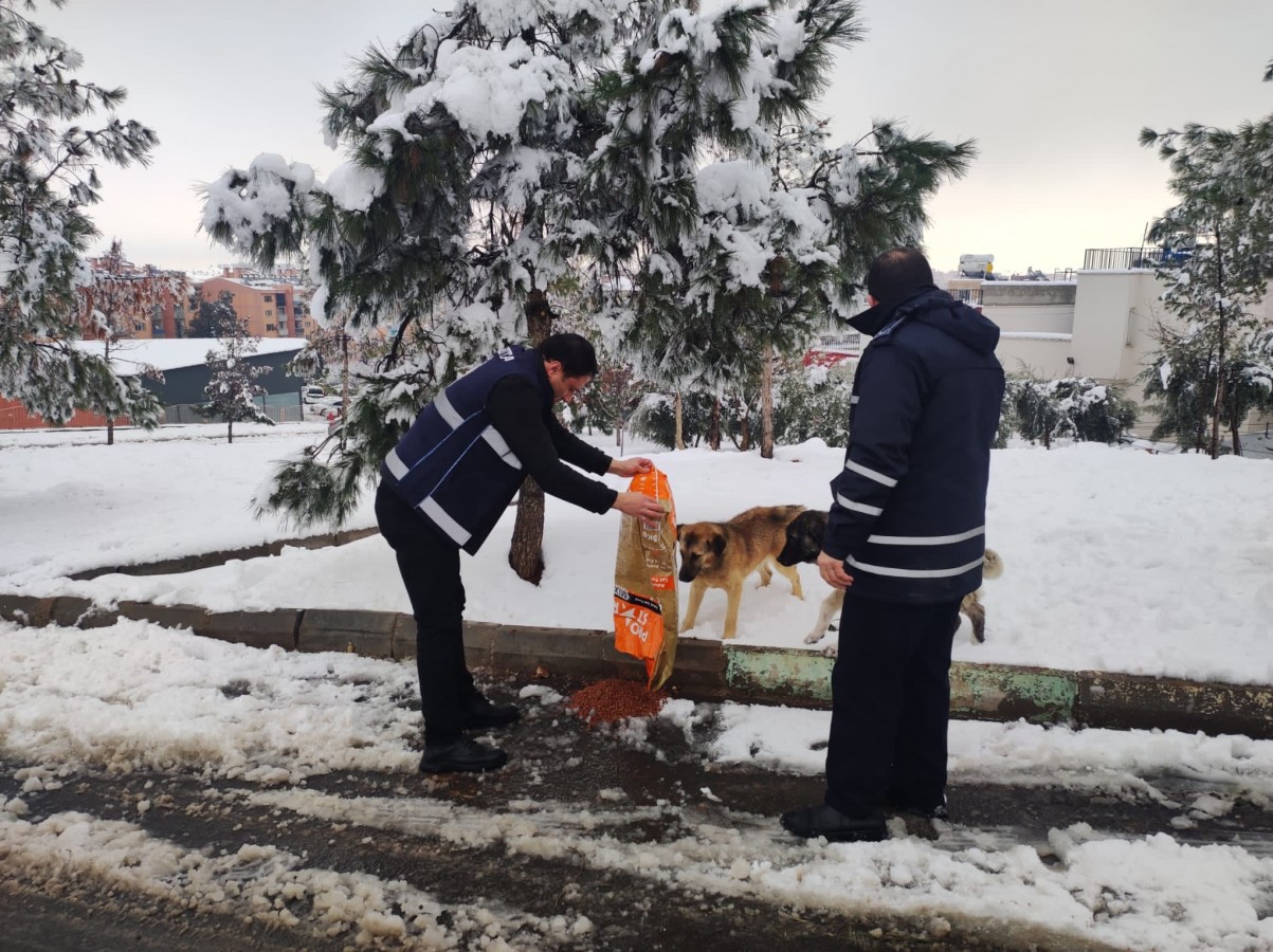 Kar yağışı nedeniyle kendilerini besleyen insanların çoğu evlerinde olduğu için sokaklarda açlık tehlikesiyle karşı karşıya kalan kedi ve köpeklerin imdadına koşan iyilik merkezi, zabıta ve park bahçe müdürlüğü personeli, ilçenin onlarca farklı noktasında hayvanlara yiyecek dağıttı.