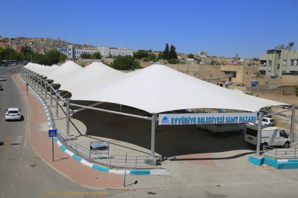 Belediyeden yapılan açıklamaya göre bölgenin mimari yapısı da dikkate alınarak tasarlanan kapalı semt pazarı, tek seferde 160 pazar tezgahını içinde barındıracak şekilde dizayn edildi. Konuyla ilgili açıklama yapan Eyyübiye Belediye Başkanı Mehmet Kuş, "Durmadan, yorulmadan çalışmaya ve üretmeye devam ediyoruz. 1600 metre karelik kapalı alana sahip semt pazarımız hayırlı uğurlu olsun" dedi.