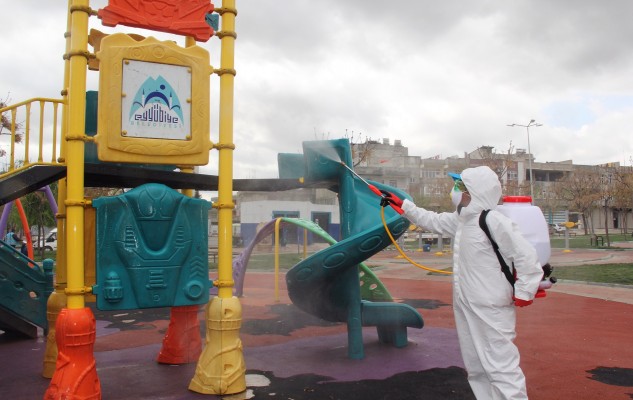Eyyübiye Belediyesi, koronavirüs salgınına karşı korunma tedbirleri kapsamında çalışmalarına devam ediyor. Eyyübiye Belediye Başkanı Mehmet Kuş’un talimatlarıyla ilk günden itibaren kolları sıvayan Eyyübiye Belediyesi Temizlik İşleri Müdürlüğüne bağlı ekipler, ilçe genelinde temizlik ve dezenfekte işleminlerini sürdürüyor. Ekipler bir yandan ana arterler başta olmak üzere tüm cadde ve sokaklarda yıkama ve temizlik çalışması yaparken diğer yandan vatandaşların yoğunluk oluşturduğu alanları da dezenfekte ediyor.