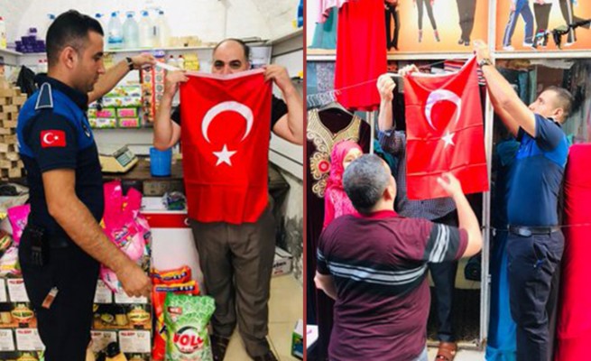 Eyyübiye Belediyesine bağlı Zabıta Müdürlüğü ekipleri, Çarşı bölgesi olarak adlandırılan alanda bulunan esnaf ve vatandaşlara Türk Bayrağı dağıttı. Esnaf ve vatandaşlar, bayraklara yoğun ilgi gösterirken, sınırda operasyonda bulunan askerlere de dua etti.