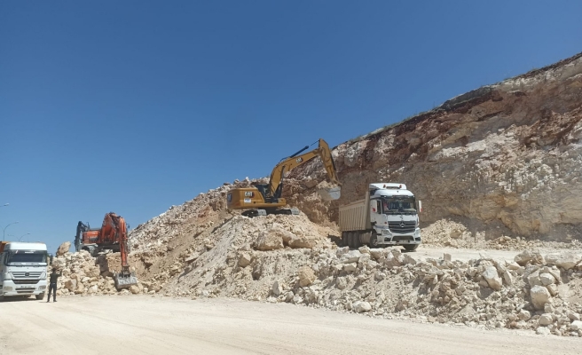 Belediyeye ait iş makinelerin çalıştığı bölgede, daha önce yol yapımı için patlatılan kayalar kaldırılırken, konutların inşaat çalışmalarının idare edileceği şantiye binaları da bölgeye kuruldu.