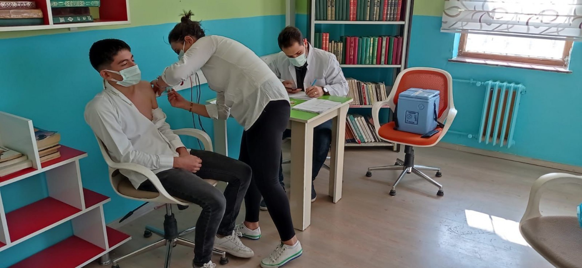 EYYÜBİYE – Şanlıurfa’nın Eyyübiye ilçesinde sağlık müdürlüğü ekipleri, Kovid-19 tedbirleri kapsamında liselerde velilerin onayı alınarak 12-18 yaş arası öğrencilere aşı yaptı.