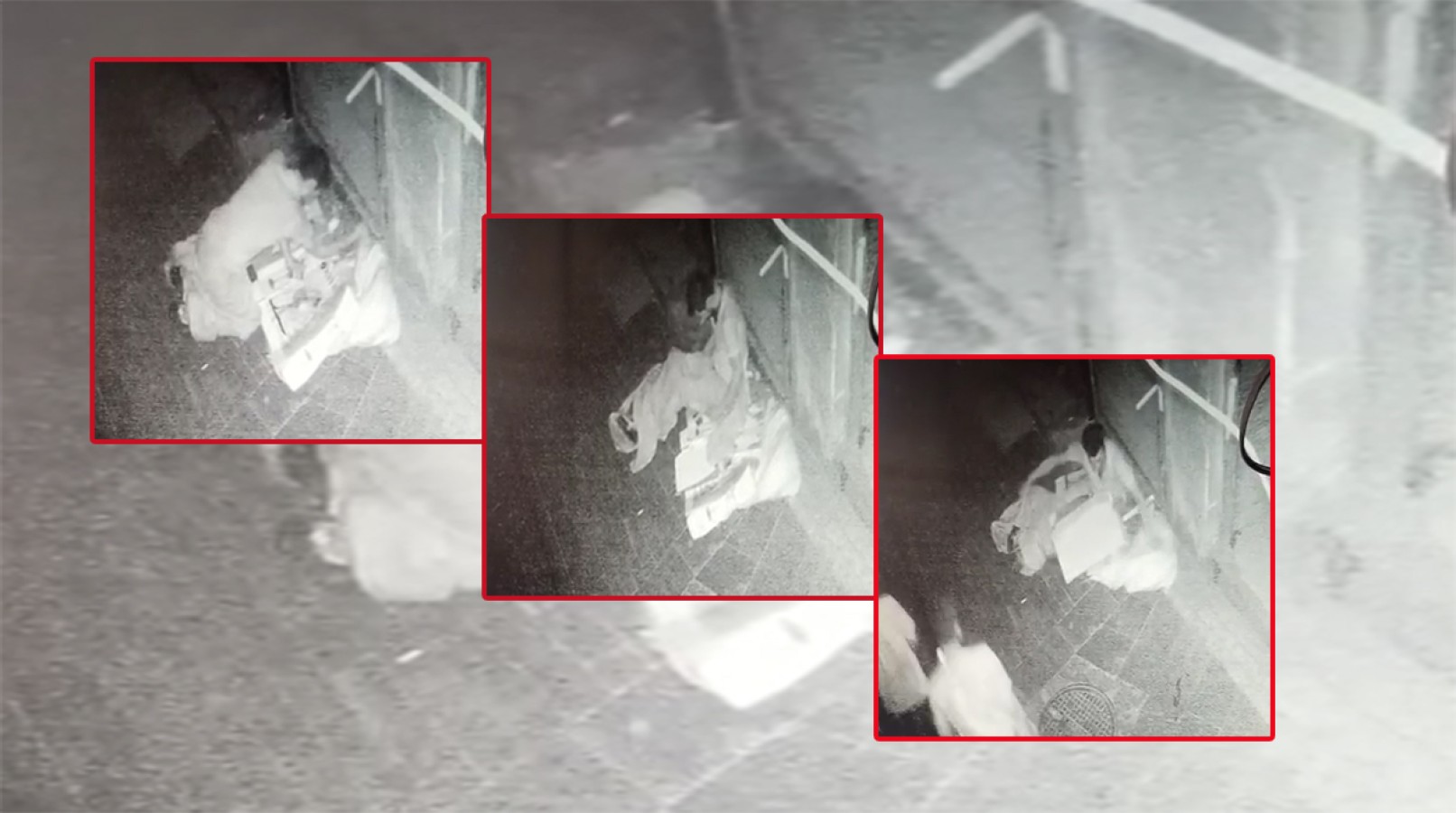 Güvenlik kamerasına yansıyan olayda, kimliği henüz öğrenilemeyen erkek bir şahsın, bir iş yerinin önünde uyumak için hazırlık yaptığı görülüyor. Kartonları yere serer gibi yapan hırsız, daha sonra iş yerinin kilidini kırıyor. Kepengi hafif aralayarak iş yerinden paketler çıkaran şahıs, sokaktan birileri geçerken de kartonları yere serermiş gibi yaptığı görülüyor.