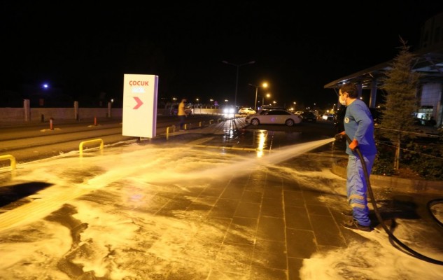 Eyyübiye Belediye Başkanı Mehmet Kuş’un talimatlarıyla ilçe genelinde çalışma yürüten ekipler, dezenfekte timi ile birlikte temizlik çalışmalarını sokak ve caddelerde sürdürüyor. Vardiyalı bir şekilde 24 saat esasına uygun bir şekilde çalışma yapan ekipler, ana caddeler ve ara sokaklarda köpüklü deterjanlı su ile dezenfekte çalışmalarını yürütüyor.
