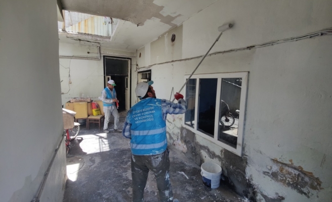 Boya çalışmaları öncesi evlerin alçı ve sıva gibi