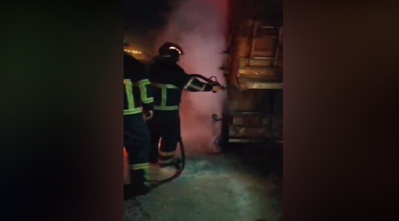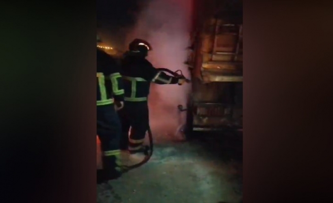 Yangını fark eden tır sürücüsü durumu itfaiye ekiplerine bildirdi.