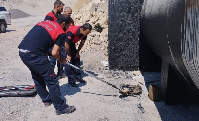görüldü. İtfaiye ekipleri tarafından su içirilip temizlenen yavru köpek