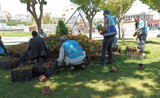 ekipler, parklara on binlerce mevsimlik çiçek dikimi gerçekleştiriyor.