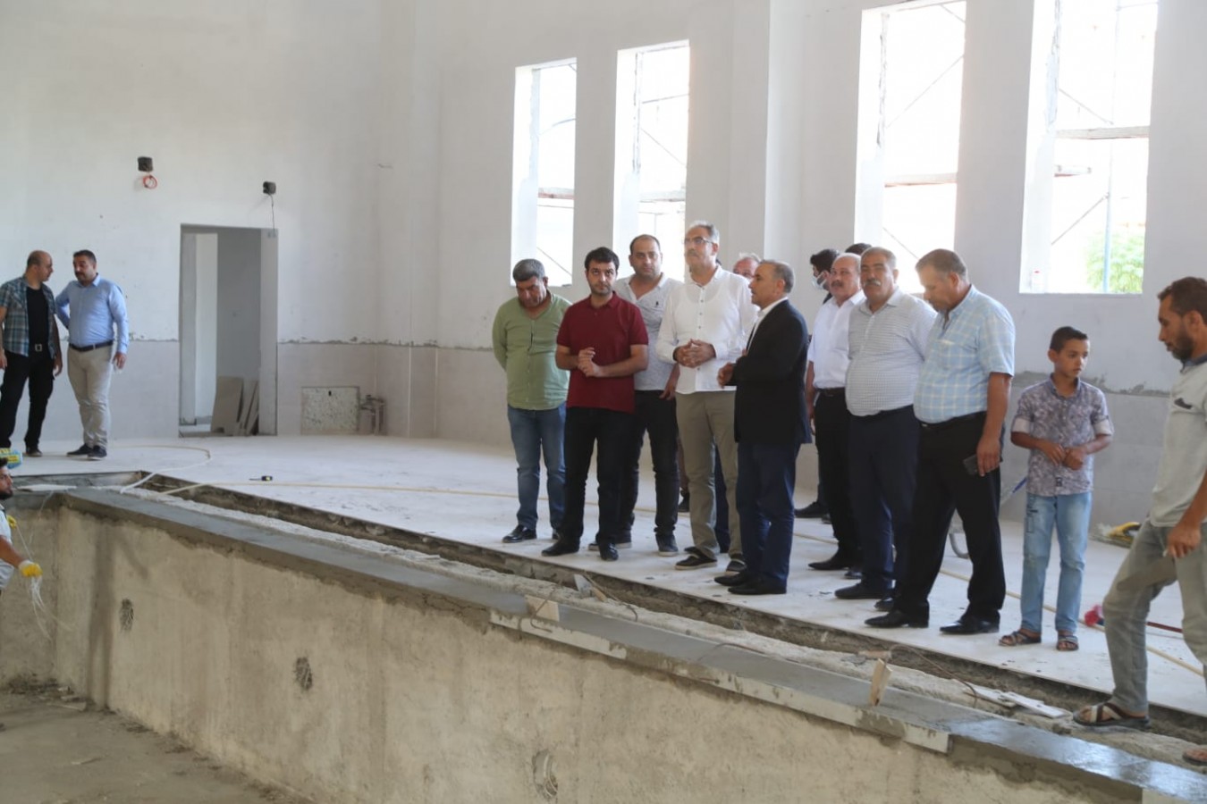 Eyyübiye Belediyesi ve Gençlik Spor Bakanlığı Spor Toto Teşkilatı işbirliğiyle yapımına başlanan Yarı Olimpik Yüzme Havuzu, Muradiye mahallesinde yaklaşık 1200 metre karelik kapalı alanı kapsayacak şekilde yapılıyor. Engelli vatandaşların da düşünüldüğü kompleks yapıda 30 metrekarelik 2 ayrı soyunma odası ile engelli vatandaşlara da hizmet verecek. Yapım çalışmaları tamamlanma aşamasına gelen havuz kompleksini AK Parti Eyyübiye İlçe Başkanı Mehmet Moğal, İlçe Yönetim Kurulu Üyeleri, Belediye Meclis Üyeleri ve Muhtar Dello Alak’la birlikte inceleyen Başkan Kuş, teknik ekipten çalışmalar hakkında bilgi aldı.
