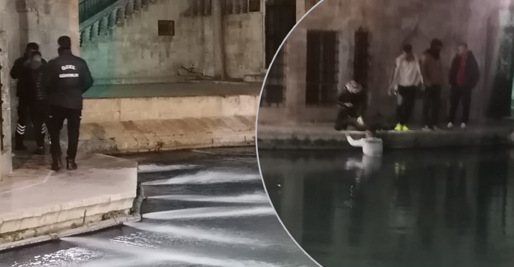 EYYÜBİYE- Şanlıurfa'nın Eyyübiye İlçesi'ndeki tarihi ve kutsal mekan Balıklıgöl'de bu akşam ilginç bir manzara yaşandı.
