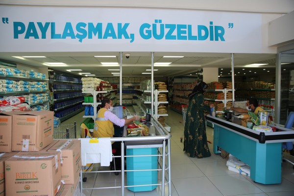 Alışveriş için markete gelen vatandaşlar salgınla mücadele kapsamında alınan tedbirler göz önünde bulundurularak içeri alınıyor. Maske ve sosyal mesafe ve hijyen kurallarının yüksek seviyede tutulduğu Sosyal Yardım tesislerinde yoğunluğun oluşmaması için öncesinden ihtiyaç sahiplerine gün ve saat bilgisi veriliyor.