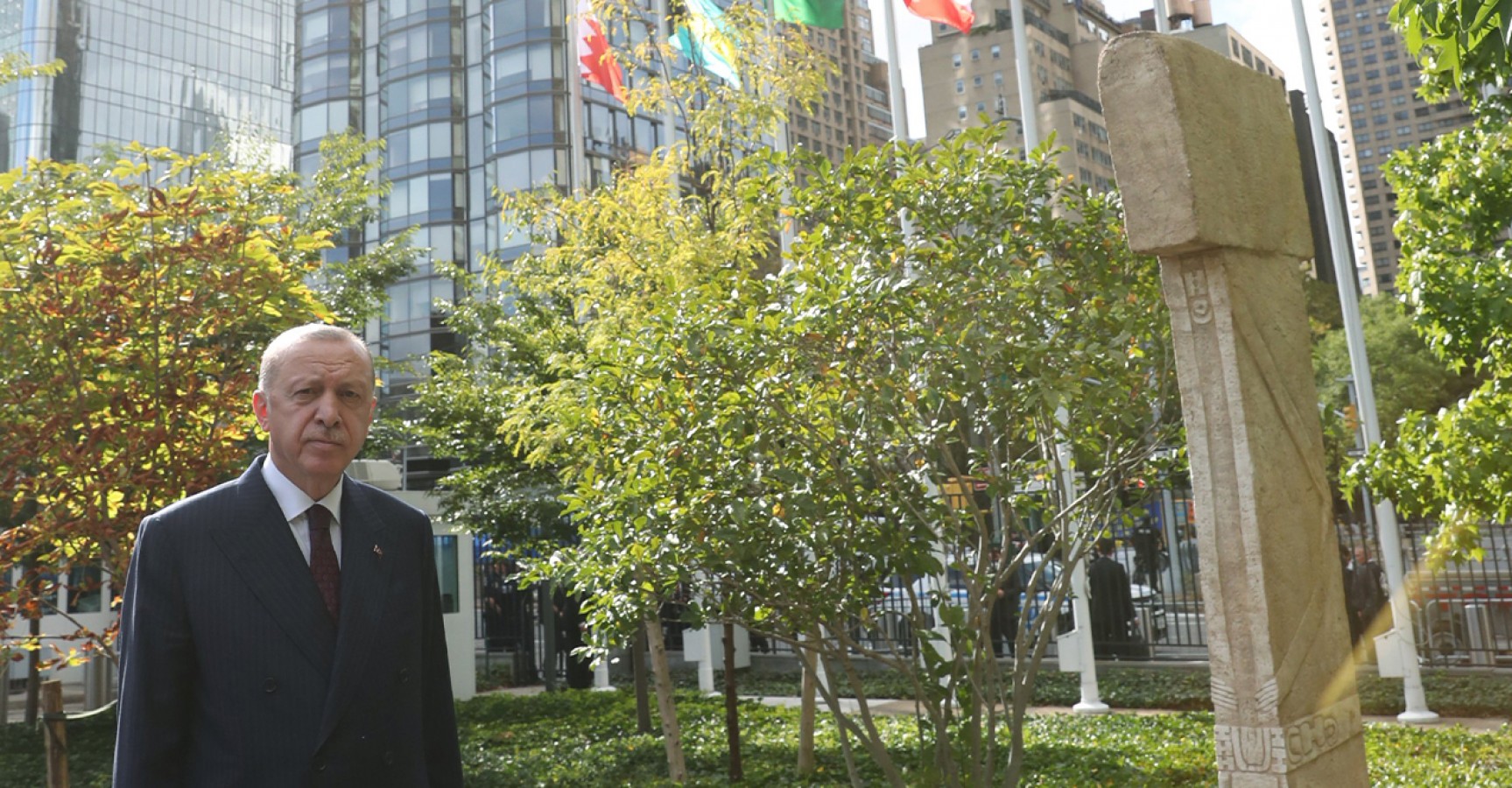 Cumhurbaşkanı Recep Tayyip Erdoğan, Birleşmiş Milletler (BM) Genel Merkezi yerleşkesinde sergilenen Anadolu'nun 12 bin yıllık mirası Göbeklitepe'deki dikilitaşların replikasını ziyaret etti.
