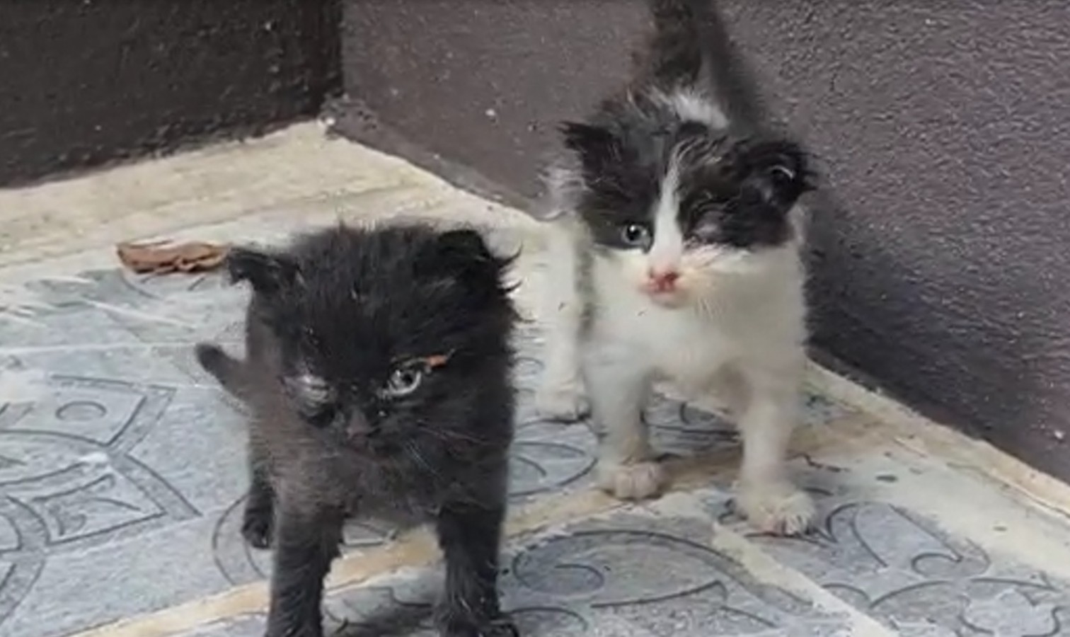Mahallede acı içerisinde miyavlayan iki yavru kedinin