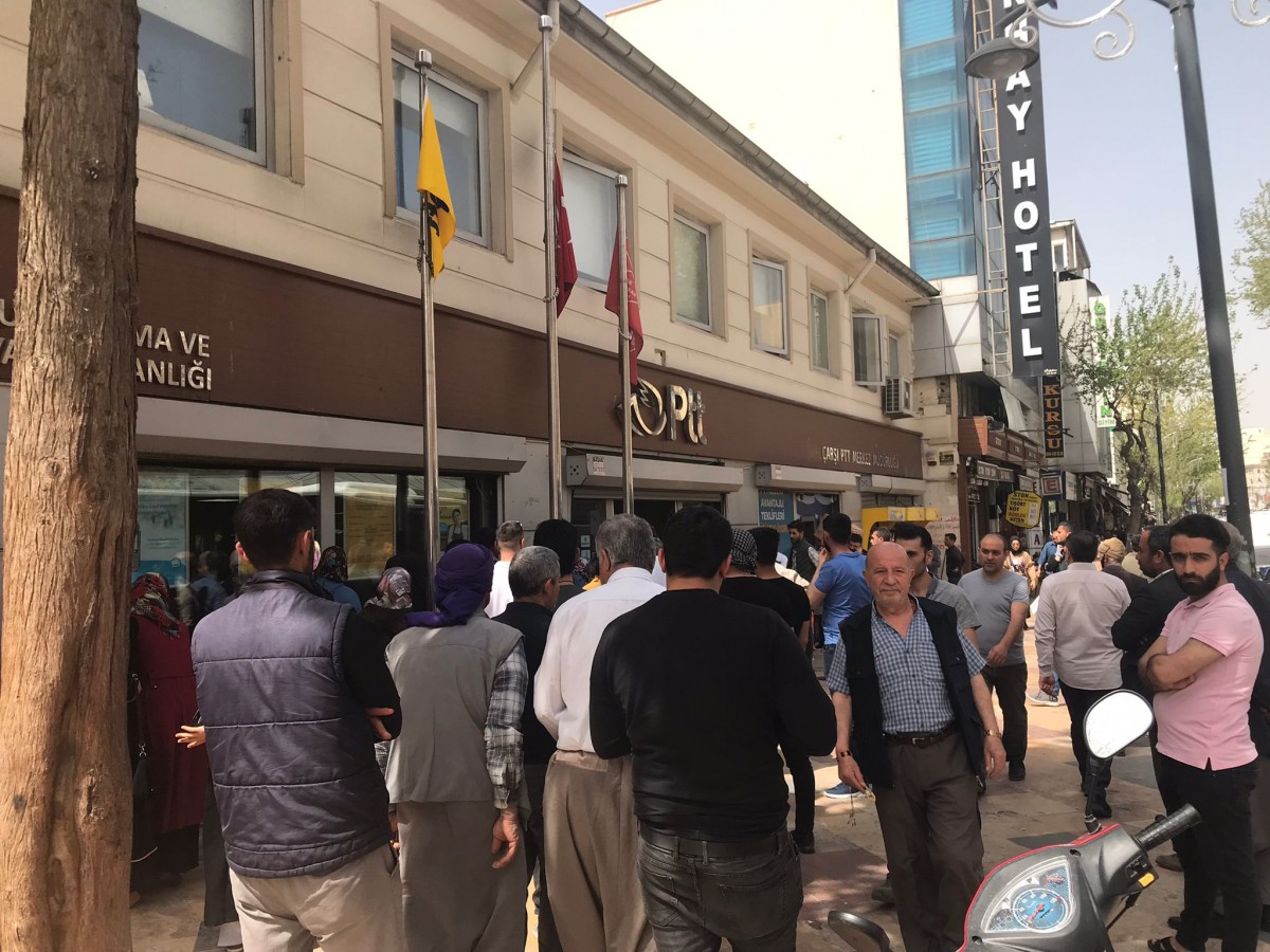 PTT’ye giden vatandaşlar büyük yoğunluk oluşturdu. Epey kalabalık olan şubede kuyruklar