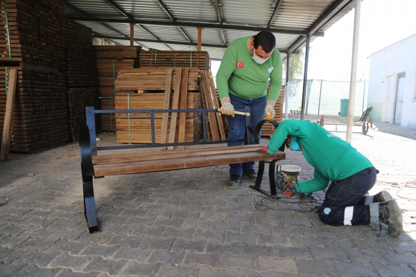 Çevre Koruma ve Kontrol Müdürlüğü, yeni normalleşme kararları ile birlikte park ve yeşil alanların bakım ve onarım çalışmalarına hız verdi. Yapılan çalışmalar kapsamında ilçe genelinde deforme olan bank ve kamelyalar, Çevre Koruma ve Kontrol Müdürlüğüne bağlı Geri Dönüşüm Atölyesinde görevliler tarafından onarılıp ilk günkü görüntülerine kavuşuyor. Ekipler, kamelya ve bankların sabit kısımlarını ise mobil atölye aracıyla yerinde onarıyor.
