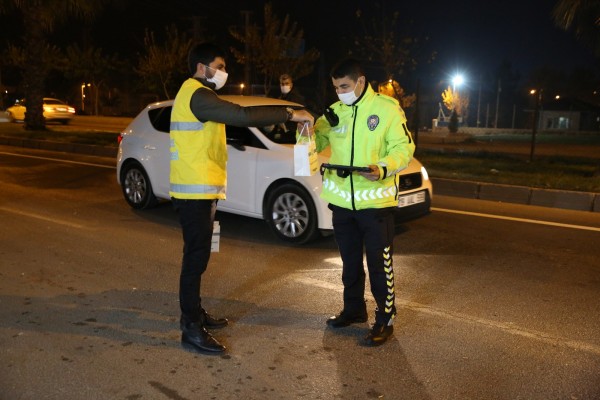 Şanlıurfa'da yeni tip koronavirüs (Kovid-19) tedbirleri kapsamında hafta sonu yurt genelinde uygulanan sokağa çıkma kısıtlamasında görev yapan polis ekiplerine Haliliye Belediyesi tarafından baklava ikram edildi.