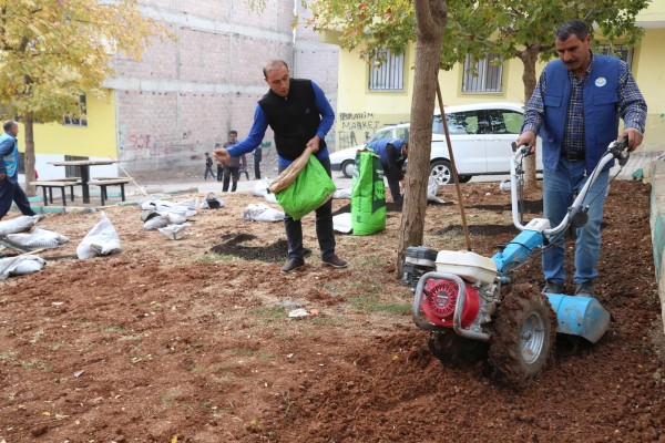 Haliliye Belediyesi Çevre Koruma ve Kontrol Müdürlüğüne bağlı ekipler ilçe merkezinde parkların bakım, onarımı ve mevsimsel şartlara göre yeşillendirme çalışmalarını aralıksız devam ediyor. Bu kapsamda ekipler, Devteşti ve İmam Bakır mahallerinde park alanlarına çim ekme işlemini gerçekleştirdi.
