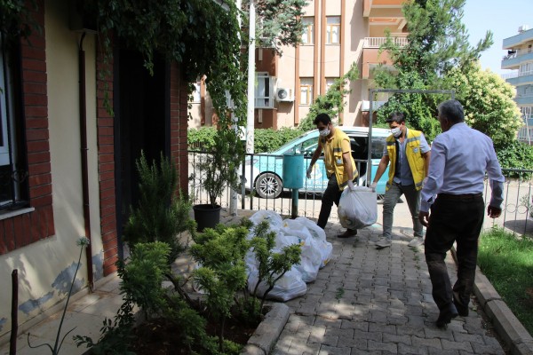 Bu çerçevede belediye ekipleri Devteşti, Yeşildirek, Ertuğrul Gazi ve Ulubatlı mahallelerinde karantinaya alınan bina sakinlerine maske ve gıda desteğinde bulundu.