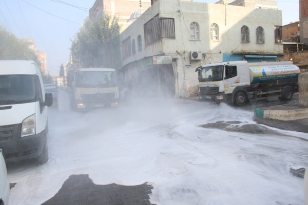 Ayrıca ekipler, temizlik çalışması başlattıkları mahallelerde dar sokakları mobil araçlar ve temizlik personeli desteği ile tertemiz yıkayarak dezenfekte ediyor.