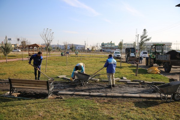 Akpınar Mahallesine kilit parke döşemesi yapan Haliliye Belediyesi, bunun yanı sıra park ve bahçelerde bakım ve onarım çalışmalarını da sürdürüyor. Bu çerçevede ekipler Sırrın ve Karşıyaka mahallelerinde bulunan parklarda çevre düzenlemesi yapıyor.