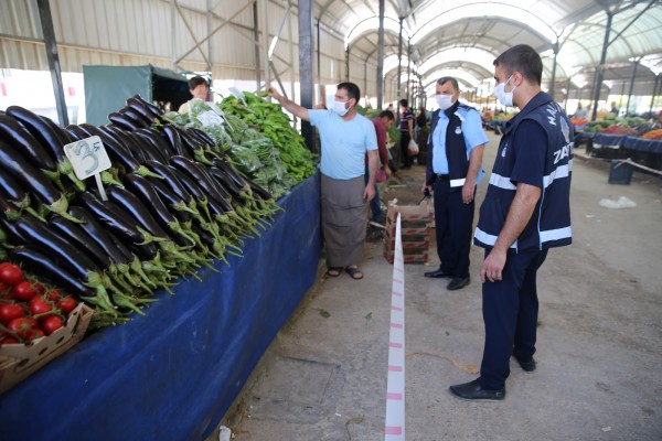 Bu kapsamda Zabıta Müdürlüğü ekipleri ilçe genelinde kurulan pazar yerlerinin giriş ve çıkışlarına bariyerler kurup burada alışverişe gelen vatandaşlara dezenfektan ve maske dağıtıp ateşlerini ölçmeye devam ediyor. Zabıta ekipleri yine salgın tedbirleri kapsamında pazar içlerinde sosyal mesafe ve tezgâh aralığı denetimleri yaparken, esnafa maske dağıtma işlemini de sürdürüyor.